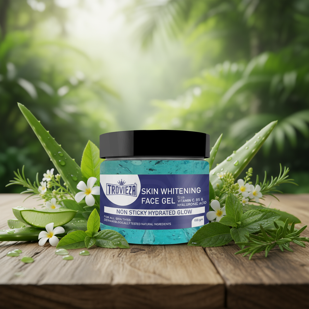 Trovieza Skin Whitening & Brightening Face Gel for Hydrated natural Glow, with Vitamin C, B5 & Hyaluronic, Non sticky, for all skin type, 100gm